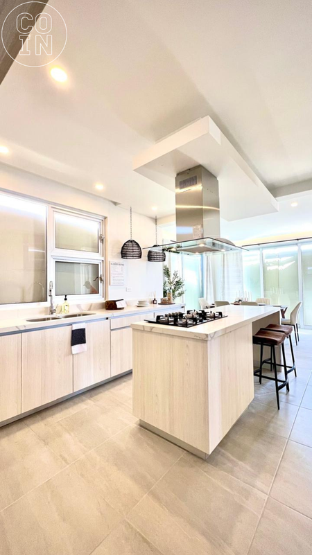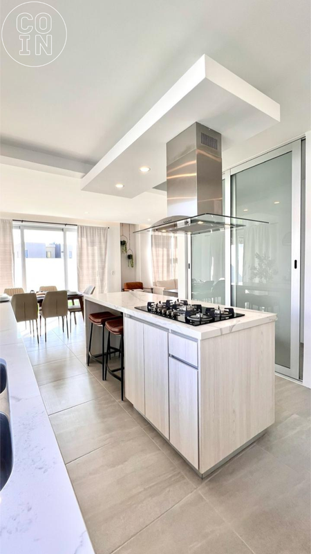 - Cocina integral con cubierta de cuarzo blanco